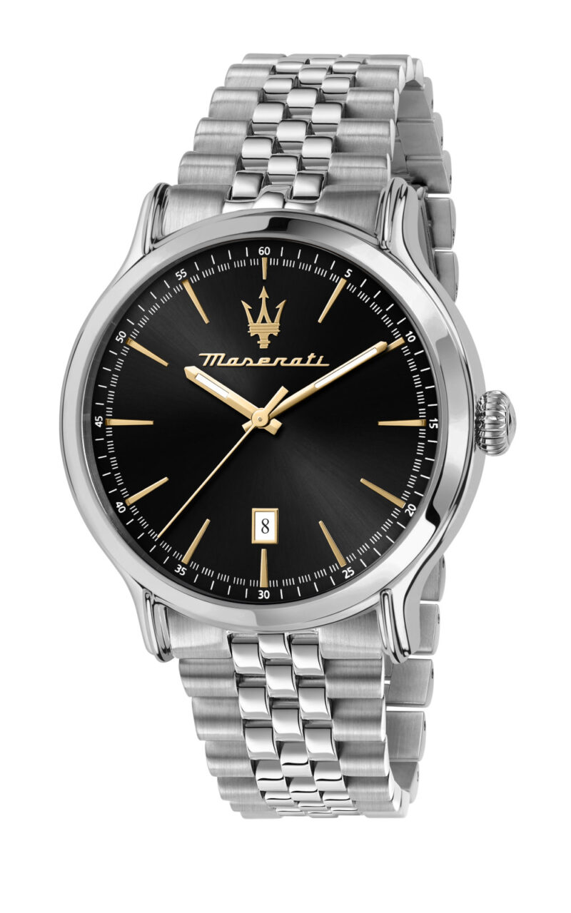 Ανδρικό ρολόι MASERATI EPOCA R8853118024 διαμέτρου 42mm, με μηχανισμό QUARTZ ακριβείας, μαύρο καντράν και κάσα – μπρασελέ από ανοξείδωτο ατσάλι